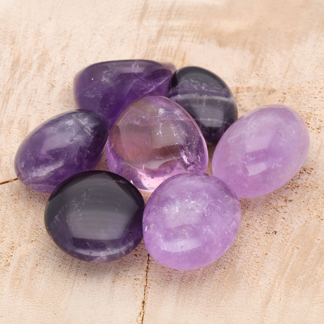 Natürliche Struktur und Glanz: Die glatte Oberfläche verstärkt das kräftige Violett des Amethysts, und fühlt sich angenehm in der Hand an.