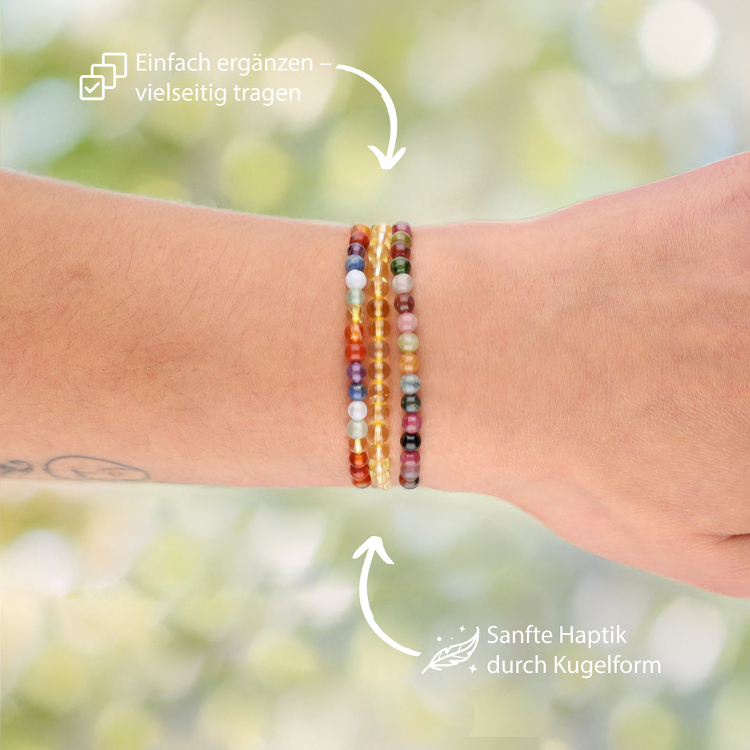 - Harmonisches Chakra-Armband: Dieses feine Mini-Kugelarmband mit 4 mm großen Edelsteinperlen vereint die Farben der sieben Hauptchakren zu einem stilvollen und energetischen Begleiter.