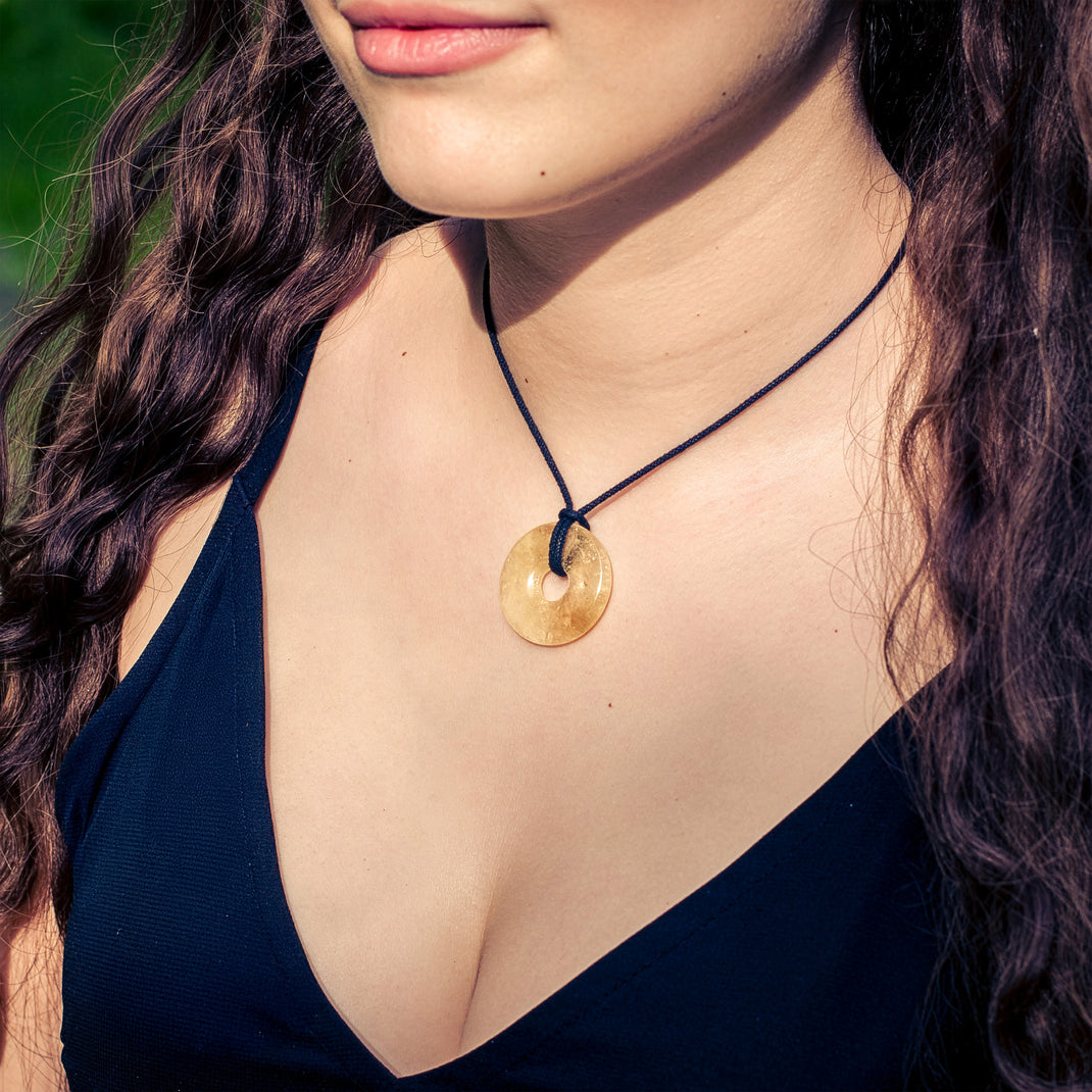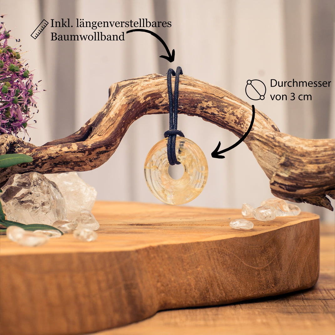 Citrin Donut | 30 mm Anhänger + Baumwollband
