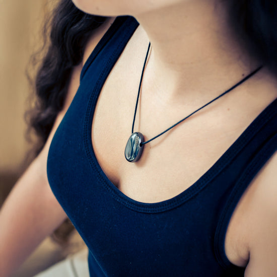 - Individuell einstellbar. Das mitgelieferte Baumwollband ist in einem passenden Schwarz und hat eine Länge von etwa 100 cm. So kann man den Anhänger lässig etwas weiter tragen oder stilvoll, ein wenig kürzer und eleganter um den Hals gelegt.