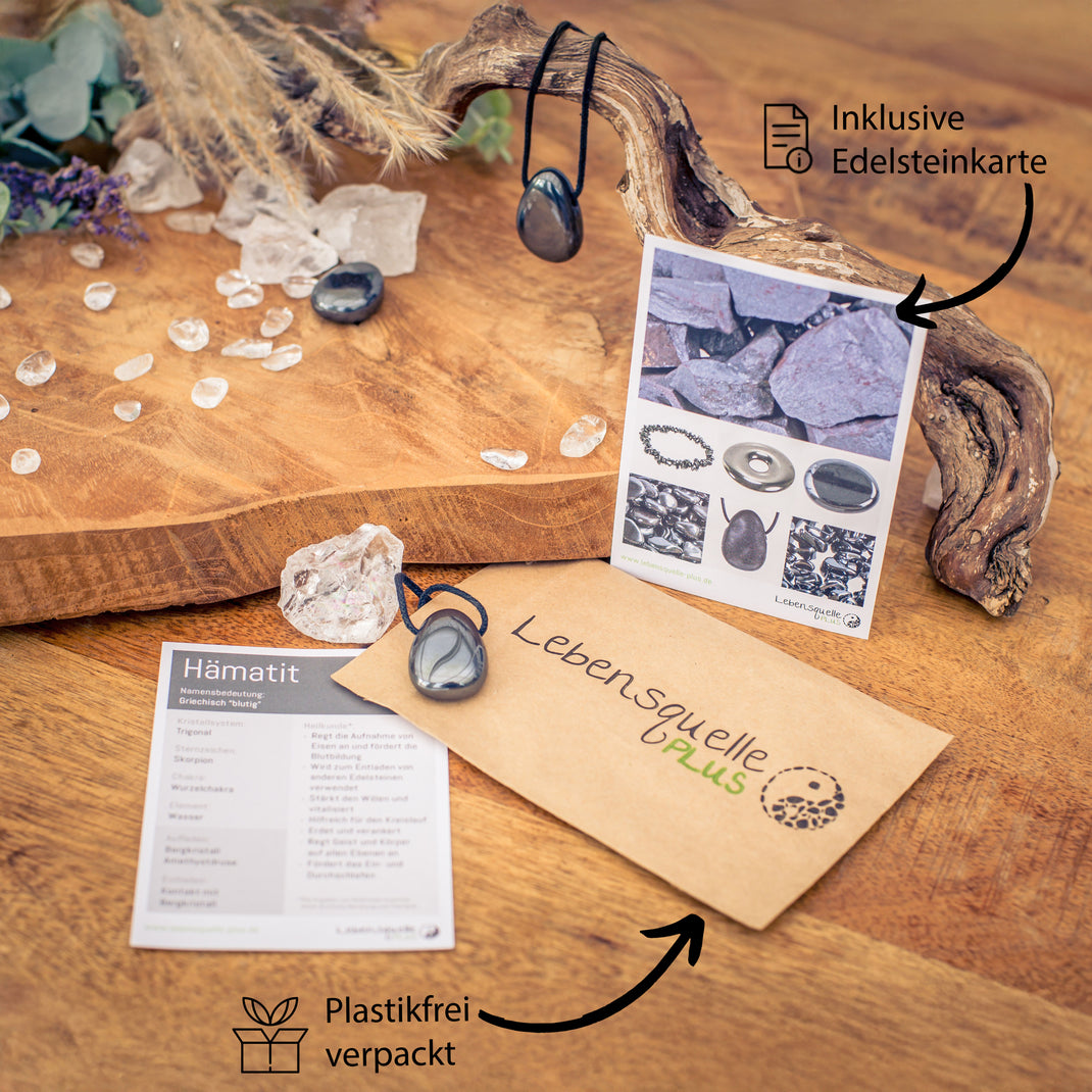 - Inklusive einer Edelsteinkarte. Eine liebevoll gestaltete Edelsteinkarte zum Hämatit mit allen nützlichen Informationen zum Sternzeichen, Chakra und den nachgesagten Heilwirkungen ist ebenfalls enthalten.