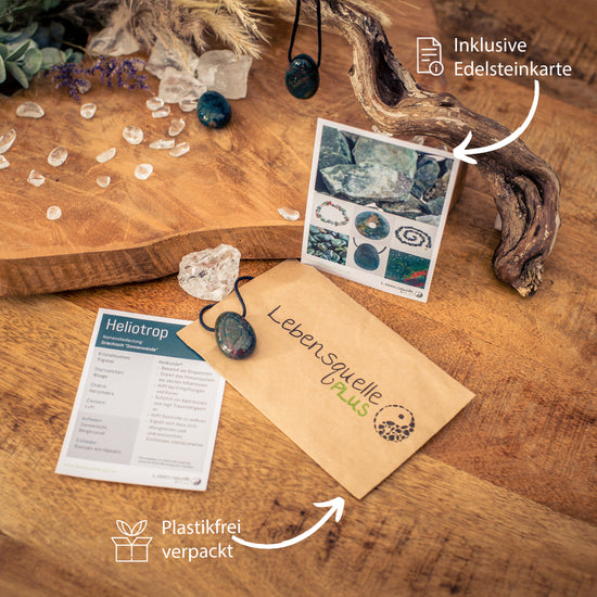 - Inklusive einer Edelsteinkarte. Eine liebevoll gestaltete Edelsteinkarte zum Heliotrop mit allen nützlichen Informationen zum Sternzeichen, Chakra und den nachgesagten Heilwirkungen ist ebenfalls enthalten.