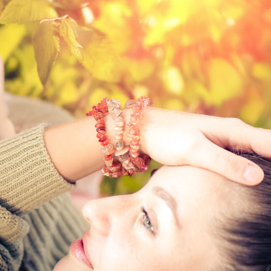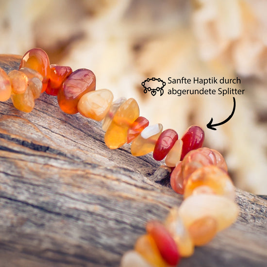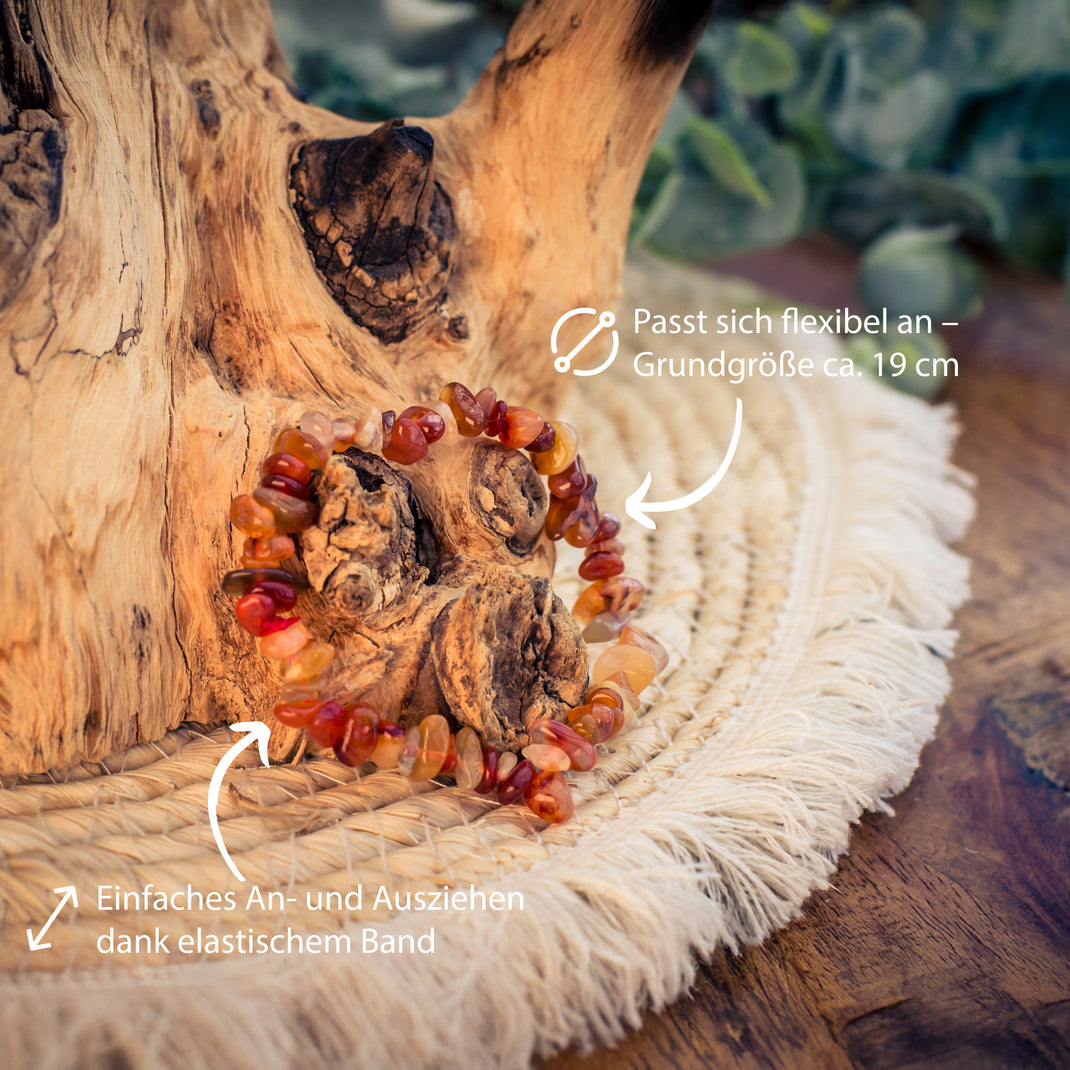 - Erwärmender Glanz: Das Splitterarmband aus Karneol besticht durch seine leuchtenden Rottöne und verleiht jedem Outfit eine kraftvolle Ausstrahlung.