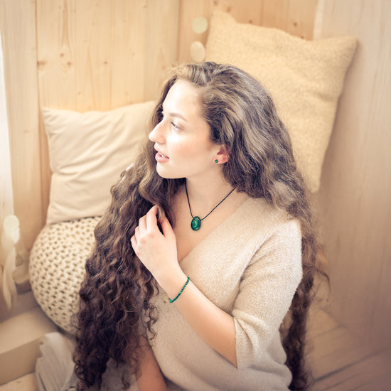 Vielseitig kombinierbar: Der intensive grüne Farbton des Malachits lässt sich sowohl alleine als auch in Kombination mit anderen Armbändern hervorragend tragen.