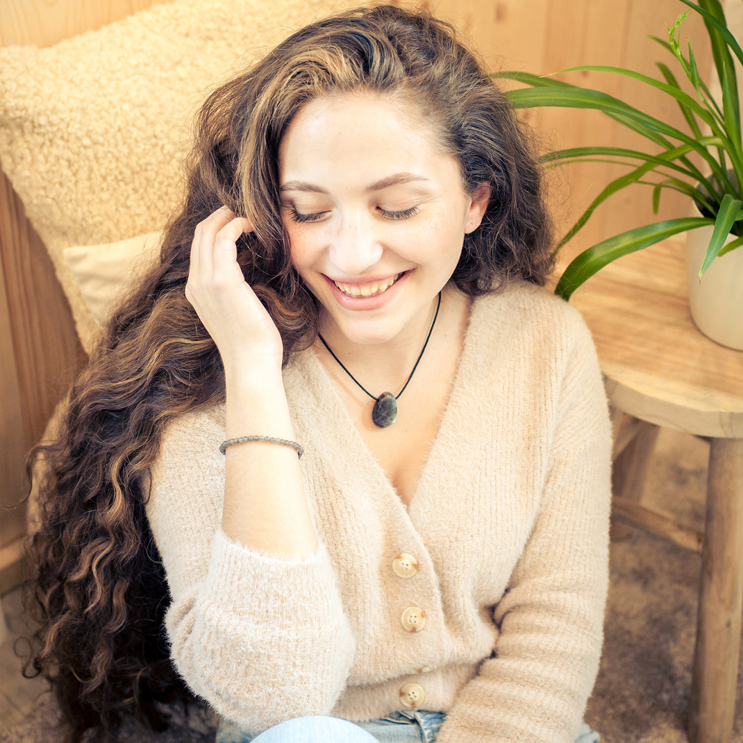 Vielseitig kombinierbar: Der schimmernde Labradorit lässt sich wunderbar mit anderen Schmuckstücken kombinieren oder als eigenständiges Highlight tragen.