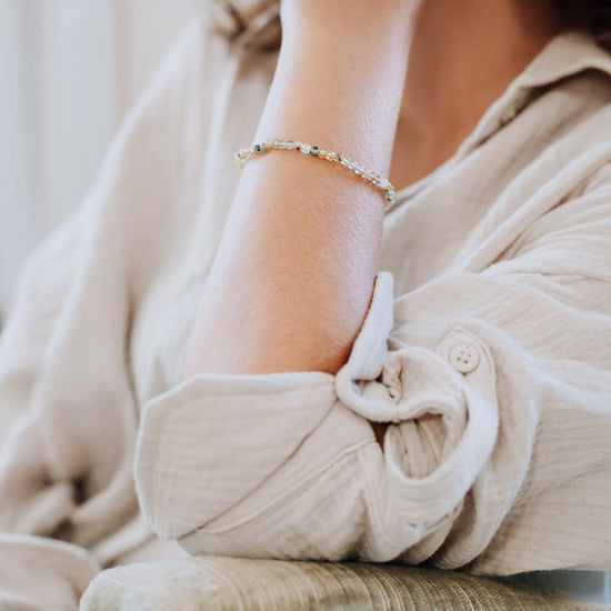 Mini Kugelarmband aus Ozeanjaspis: Dieses Armband aus 4 mm großen Ozeanjaspis-Perlen beeindruckt mit seiner einzigartigen Farbvielfalt, die von Grün- bis Brauntönen reicht und eine besondere natürliche Schönheit ausstrahlt.