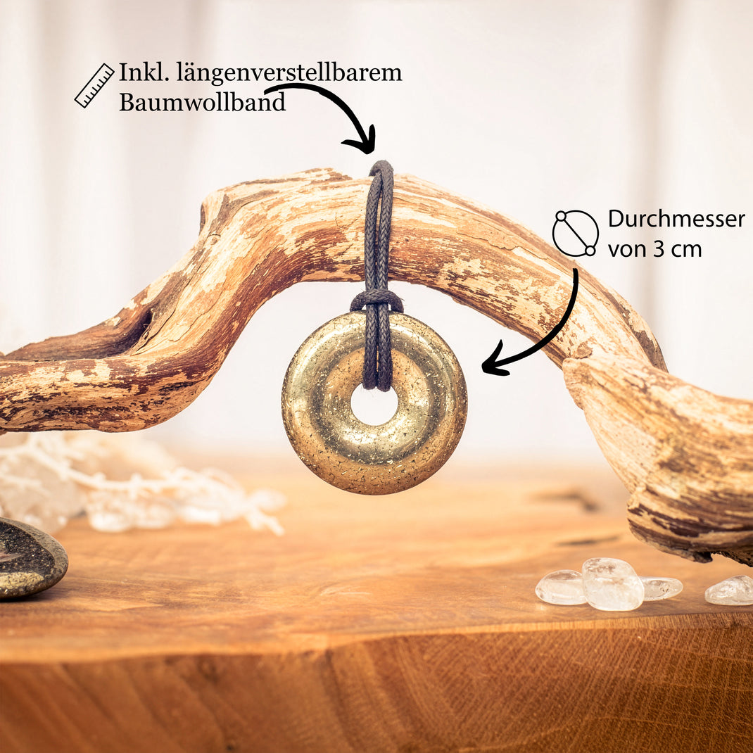 Pyrit Donut | 30 mm Anhänger + Baumwollband