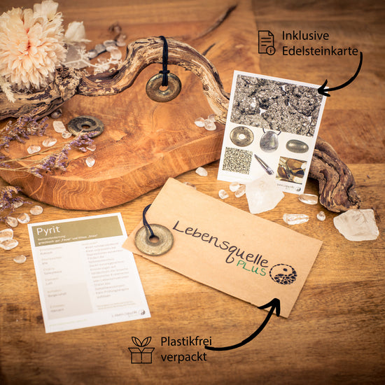 - Inklusive Edelsteinkarte Die beiliegende Edelsteinkarte liefert faszinierende Informationen über die Bedeutung und Eigenschaften des Pyrits