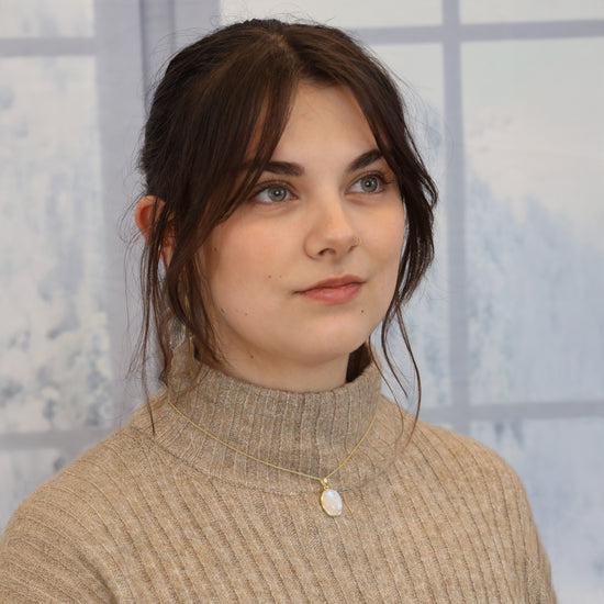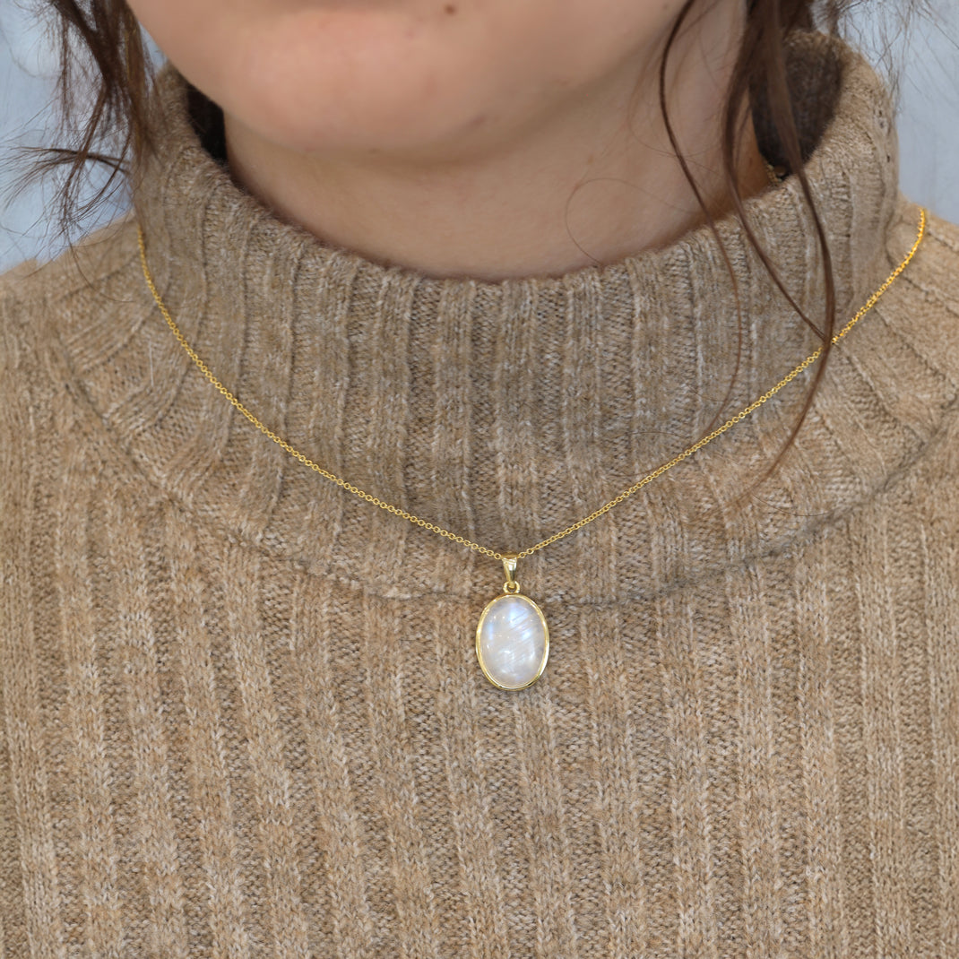 Regenbogen- Mondstein Anhänger (oval) in vergoldetem Silber gefasst