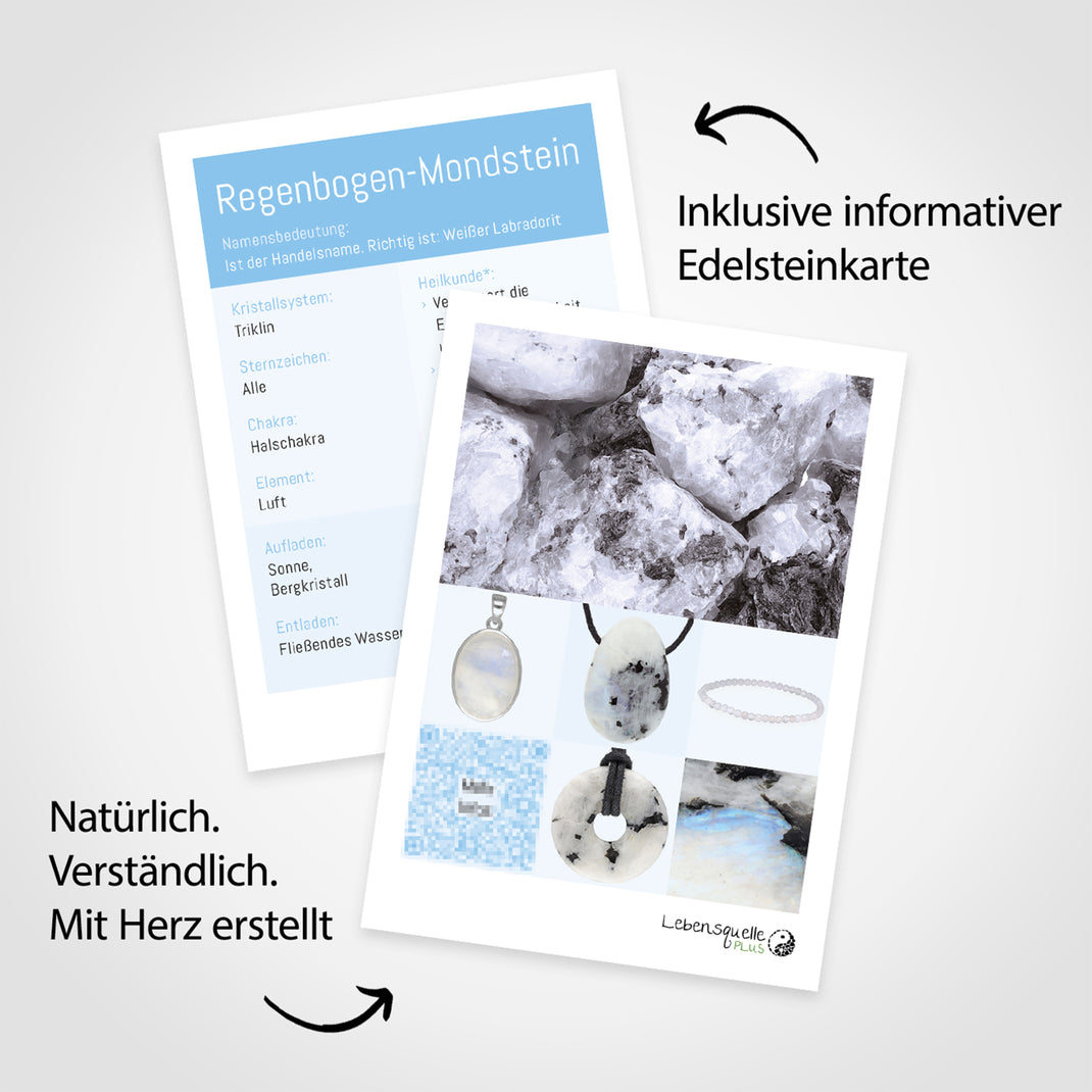 Vielseitig einsetzbar: Als Handschmeichler, Taschenstein oder meditatives Accessoire ist der Regenbogen-Mondstein ein eleganter Begleiter für den Alltag.