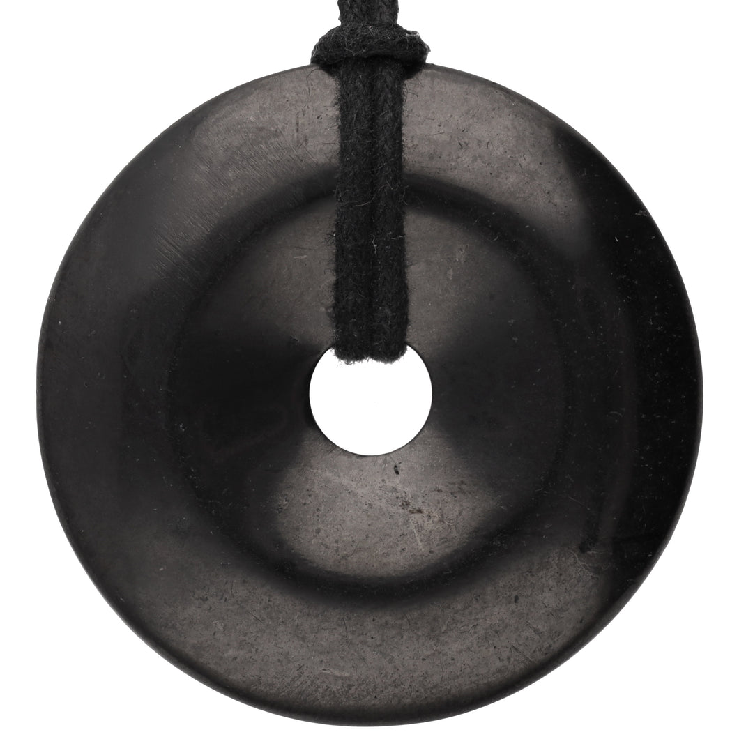 Schungit Donut | 40 mm Anhänger + Baumwollband