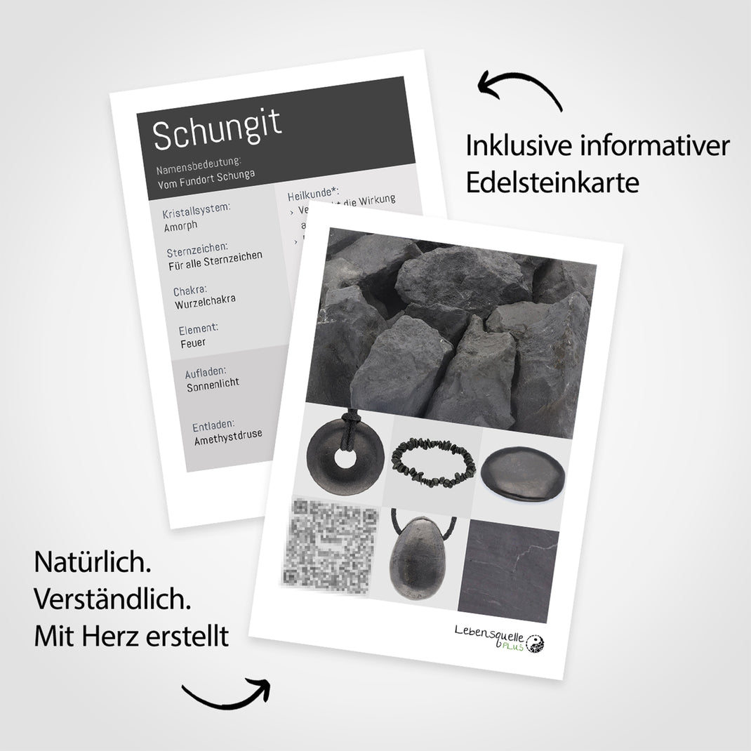 Praktischer Begleiter für den Alltag: Mit seiner edlen, minimalistischen Optik ist der Schungit ideal als alltäglicher Begleiter, sei es als dekorativer Stein oder als persönlicher Handschmeichler.