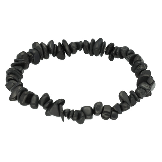 - Splitterarmband aus Schungit-Trommelsteinchen mit einem tiefen, mattschwarzen Farbton und einer einzigartigen, erdigen Ausstrahlung.