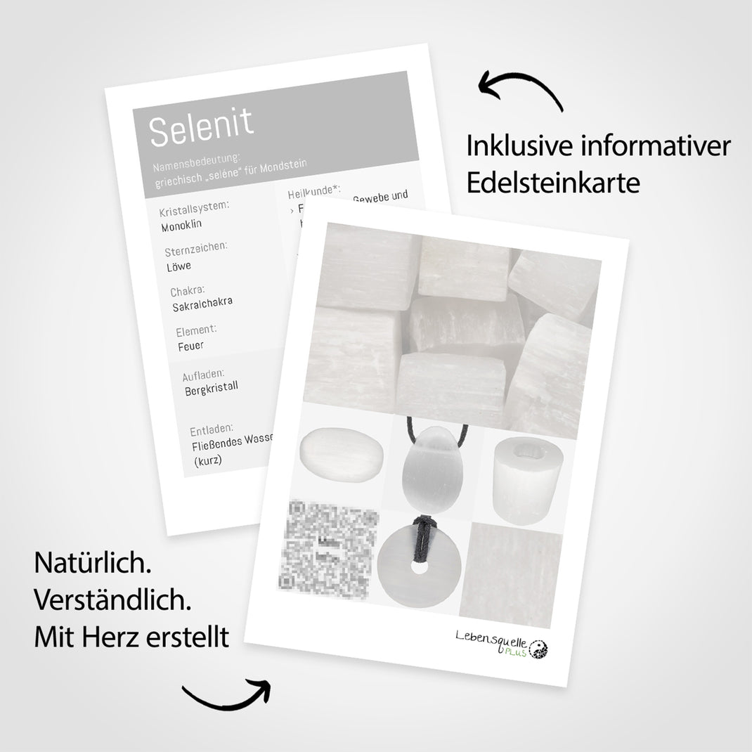 Praktischer Begleiter für den Alltag: Der Selenit eignet sich perfekt als dekoratives Accessoire oder beruhigender Handschmeichler für unterwegs.