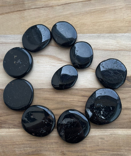 - Besonderes Angebot: Dieses Set enthält 10 zufällig ausgewählte Scheibensteine aus Schörl, die aus Restposten stammen.