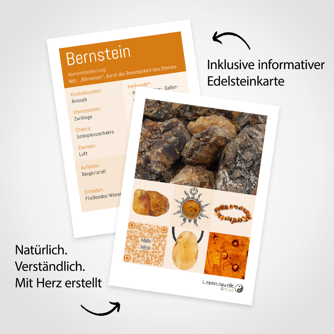 - Natural structure and shine : The polished, smooth surface highlights the intense color of the amber and feels pleasant in the hand.