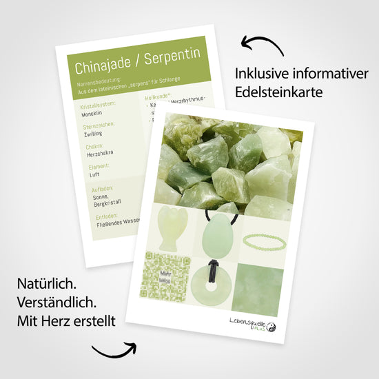 - Including gemstone card: A lovingly designed gemstone card offers interesting information about Chinese jade.