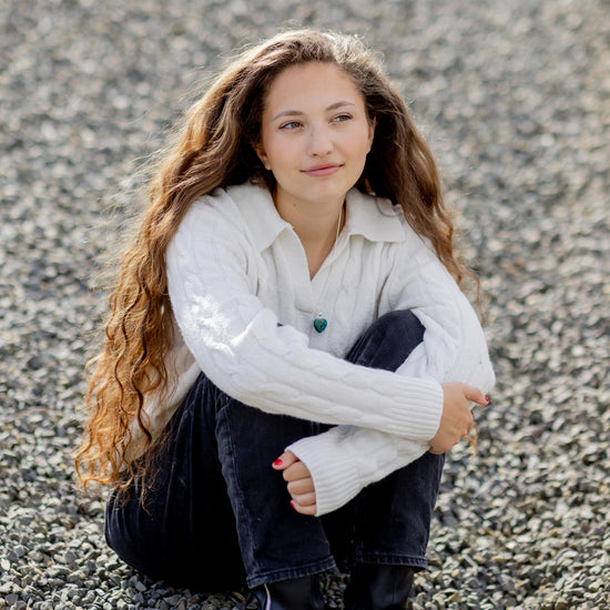 - A stylish accessory that combines elegance and naturalness. This heart pendant made of chrysocolla captivates with its vibrant color variety and harmonious radiance.