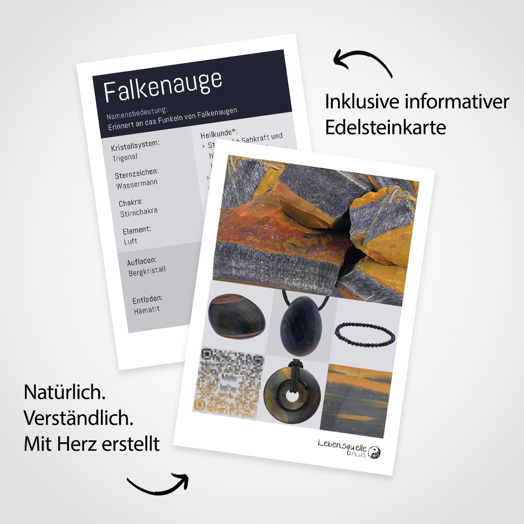 - Including gemstone card A lovingly designed card provides exciting information about the corresponding zodiac signs and chakras of the falcon's eye.