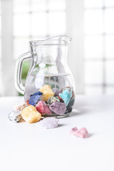 Pleasant size: The raw stones have a diameter of approx. 3–5cm and lie well in the hand or in the carafe.