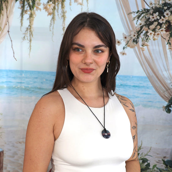 Colorful Fluorite Donut A fascinating donut made of colorful fluorite with its characteristic color palette, from delicate green to intense violet. The set includes a 100 cm black cotton cord without a clasp, perfect for flexible wearing options.