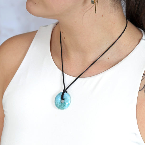 Larimar Donut A-Quality | 30 mm Pendant + Cotton Cord
