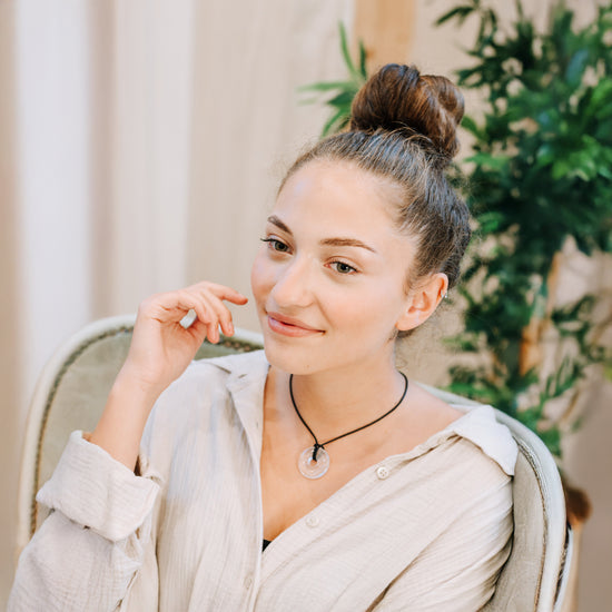 Rock crystal donut | 30 mm pendant + cotton cord