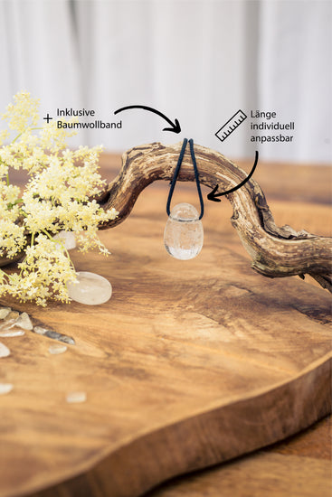- A unique natural product. This rock crystal is a genuine natural product – 100% gemstone. Each pendant is unique and unique. The stone measures approximately 3 cm in size and approximately 2 cm wide. The hole is 2.5 mm and is suitable for standard cotton and leather cords.