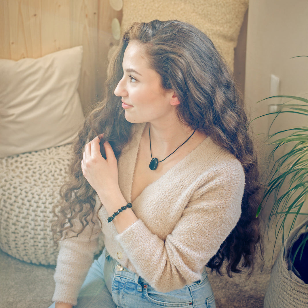 Obsidian, black drop pendant