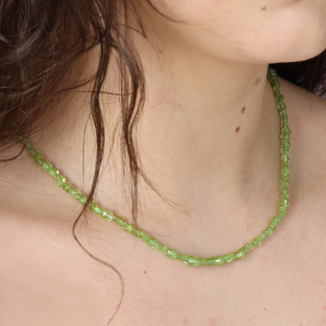 Elegant peridot necklace: This necklace is characterized by its high-quality peridot chips.