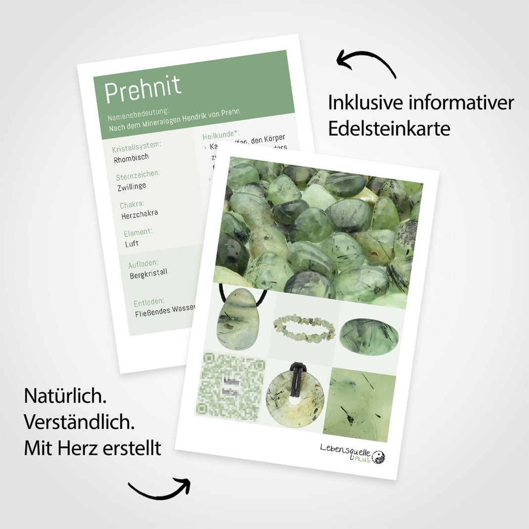 - Includes gemstone card : A lovingly designed gemstone card provides interesting information about the zodiac signs and chakras associated with prehnite.