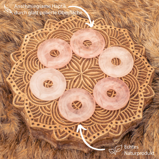 - Rose Quartz Donut This delicate rose quartz donut with a diameter of 3 cm gives every look a gentle and loving radiance.