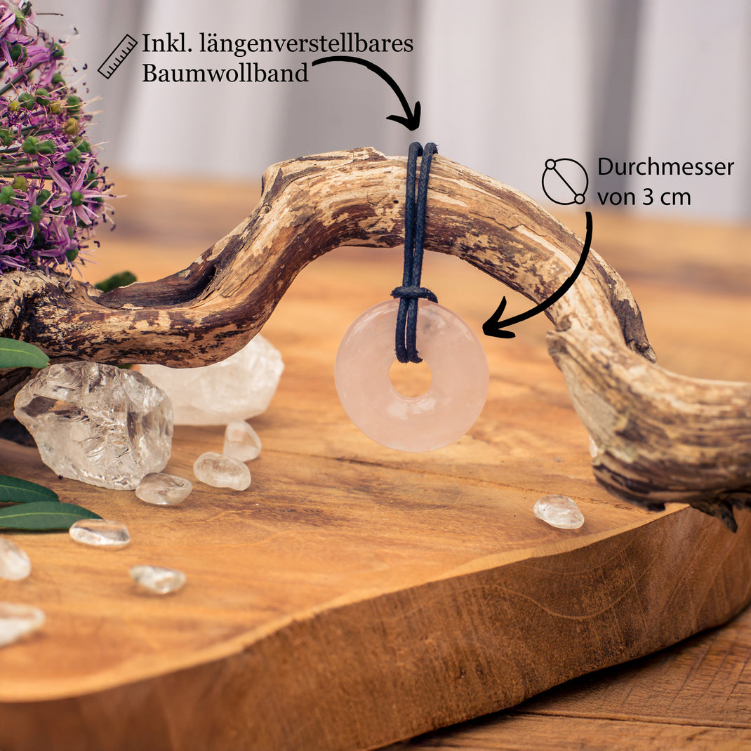 Rose Quartz Donut | 30 mm Pendant + Cotton Cord