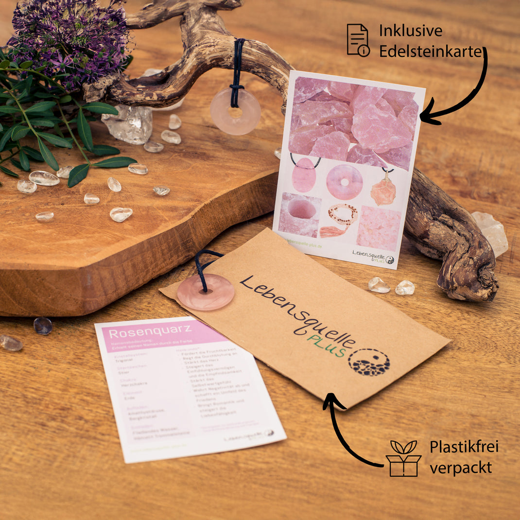 - Including gemstone card A lovingly designed gemstone card provides information about the meaning and symbolism of rose quartz and perfectly rounds off the set.