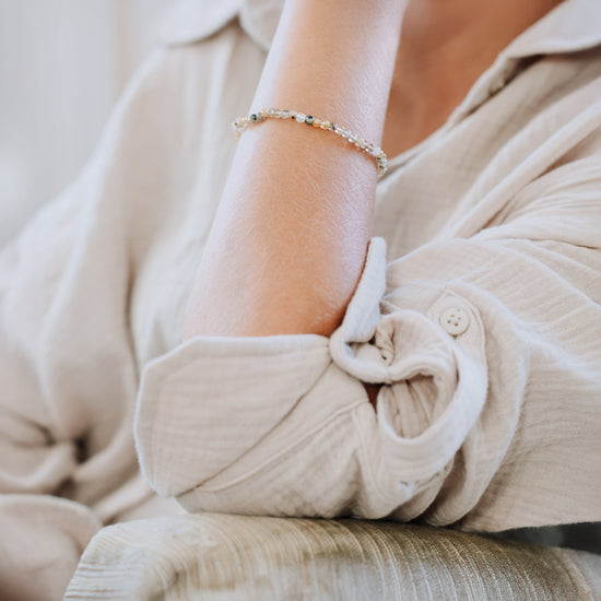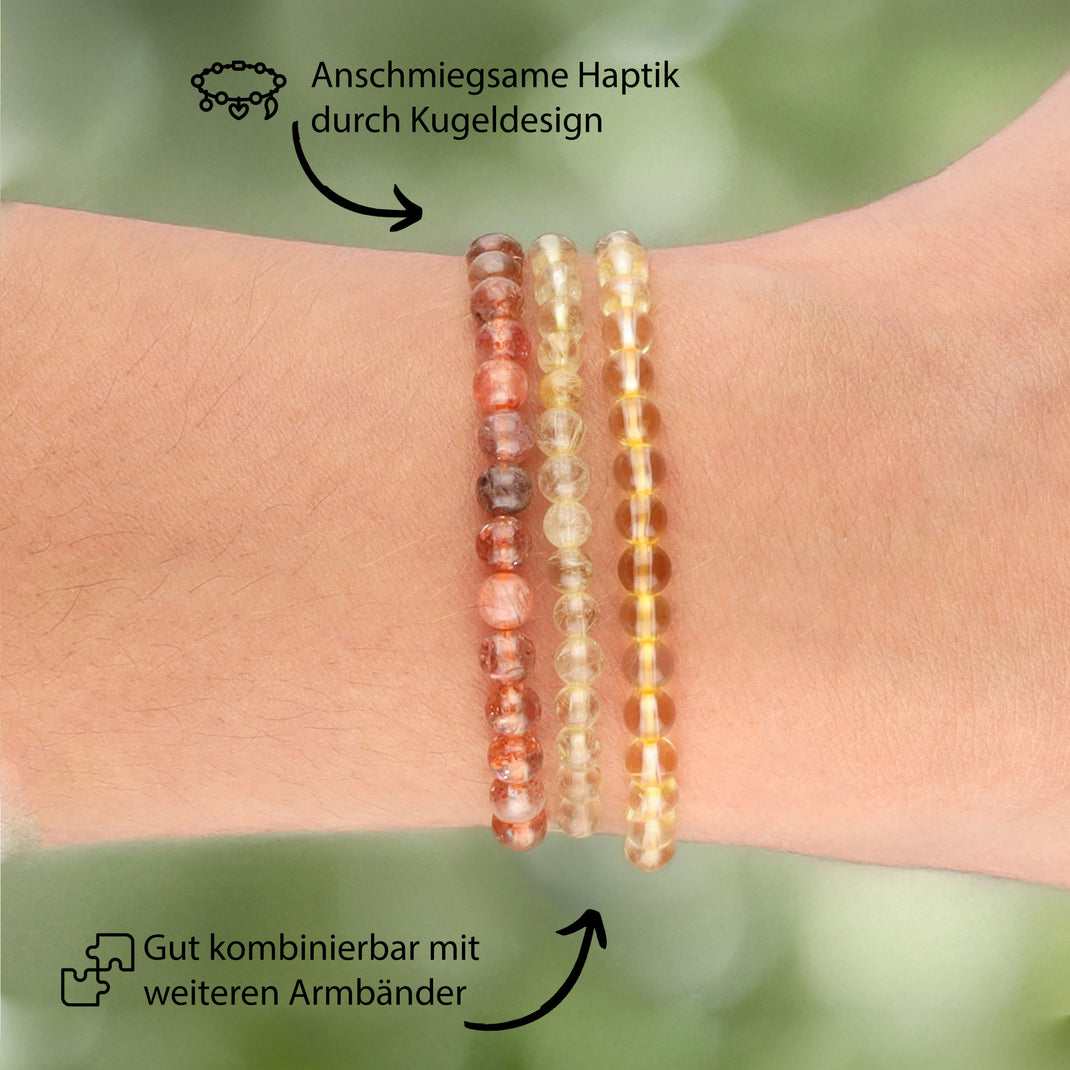 Elegant rutilated quartz beads: The 4 mm rutilated quartz beads attract everyone's attention with their fine, golden inclusions and make the bracelet a noble accessory.