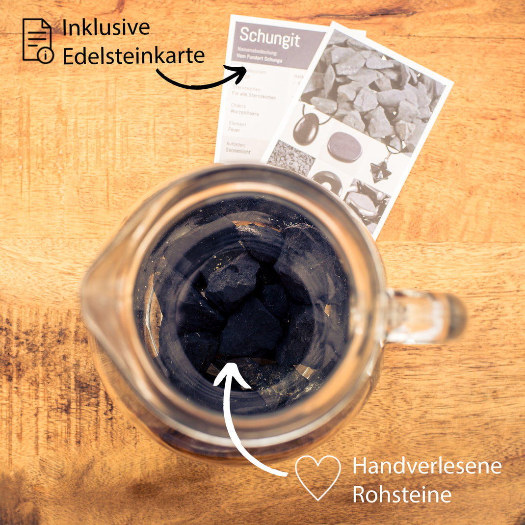 Includes a gemstone card . A lovingly designed gemstone card for shungite with all the useful information about the zodiac sign, chakra, and the purported healing properties is also included.