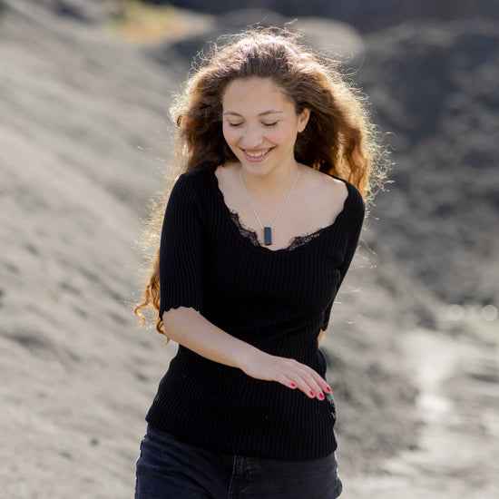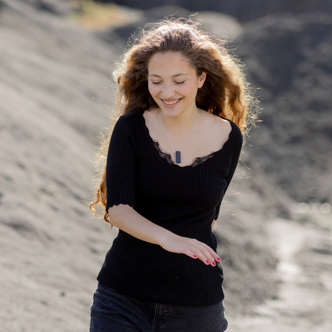 - Individually adjustable. The included cotton cord is in a matching black and measures approximately 100 cm in length. This allows you to wear the pendant casually a little looser or stylishly, a little shorter and more elegantly around your neck.